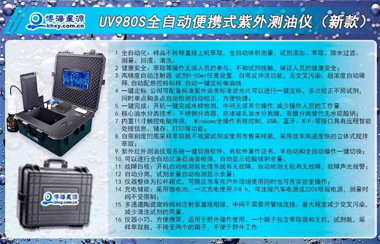 在环境监测领域,对高效、精准且便携检测仪器的需求与日俱增。北京博海星源科技有限公司推出的 UV980S 全自动便携式紫外测油仪手提款,凭借技术性能与创新设计,成为众多环境监测工作者的可靠工具。
