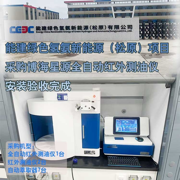 近日,博海星源与能建绿色氢氨新能源 (松原) 有限公司达成的设备采购合作项目顺利完成全流程安装验收。此次交付的 1 台全自动红外测油仪 EP4000B、2 台红外测油仪 EP600 及 7 台自动萃取器正式投入应用,不仅为该新能源企业油品检测环节筑牢了技术根基,更彰显出博海星源在环境监测仪器领域的硬核技术实力与产品竞争力。