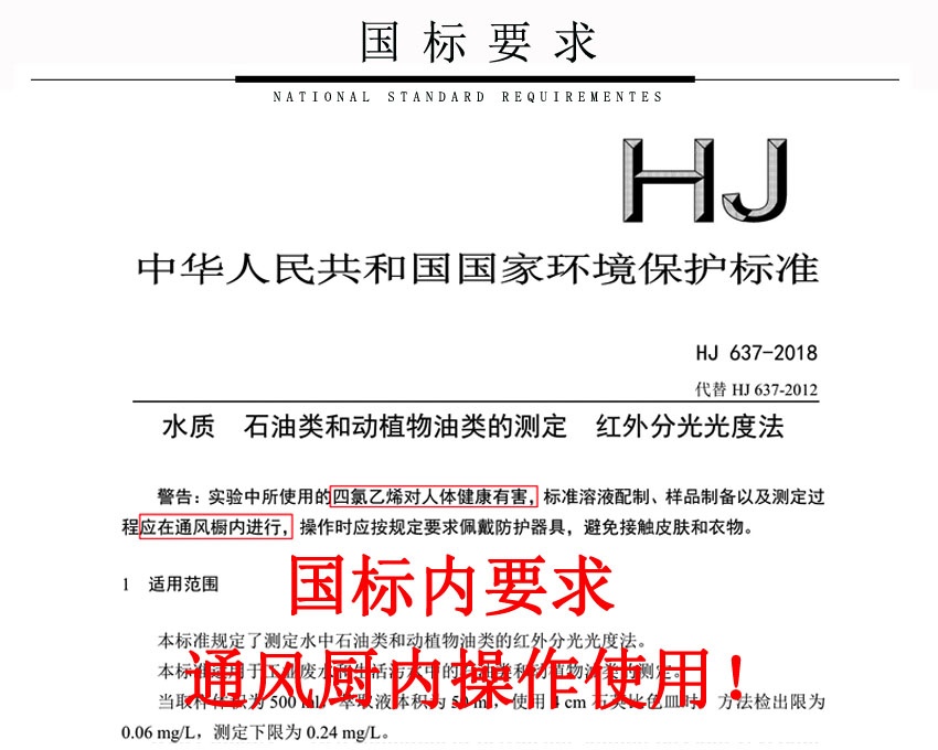 HJ637-2018水质 石油类和动植物油的测定 红外光度法