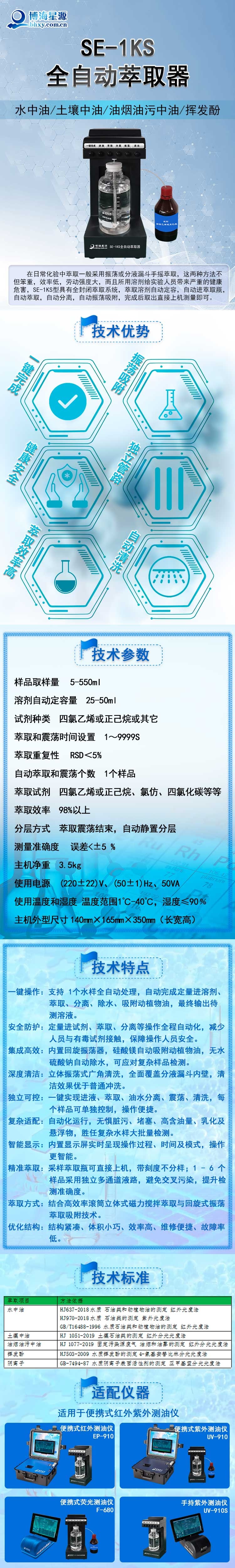 SE-1KS型自动萃取器广泛适用于环保、卫生防疫、供排水、高等院校、科研院所以及石油石化厂矿企业等实验室需要液液萃取的场合,可对水中油、固体中含油,油烟油污含油,挥发酚,阴离子等项目进行萃取操作。