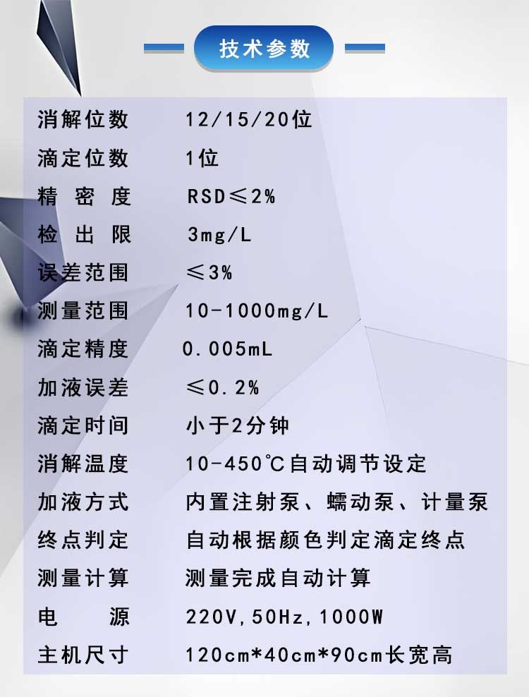 仪器用途:地表水、生活污水、工业废水中化学需氧量的测定