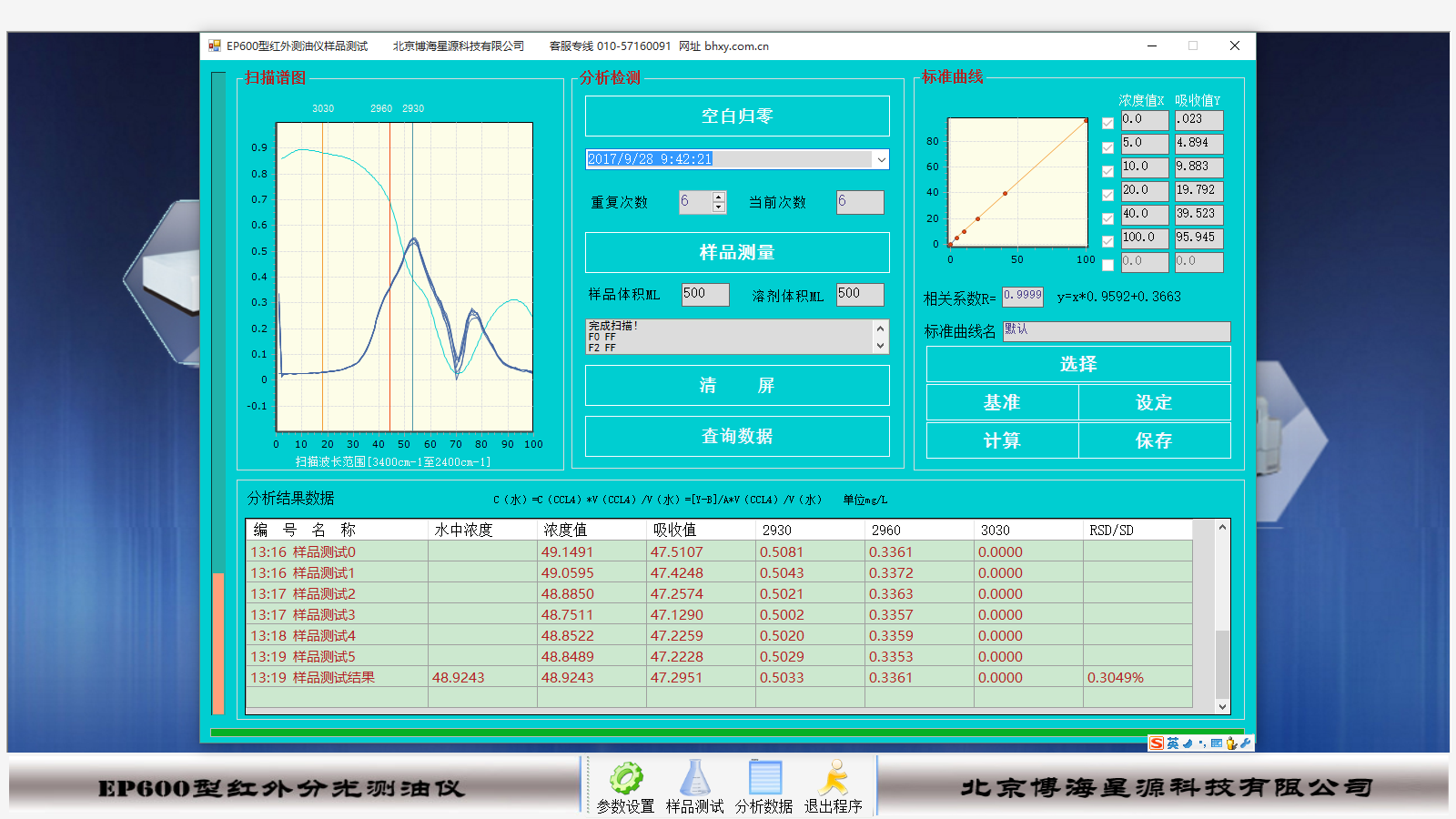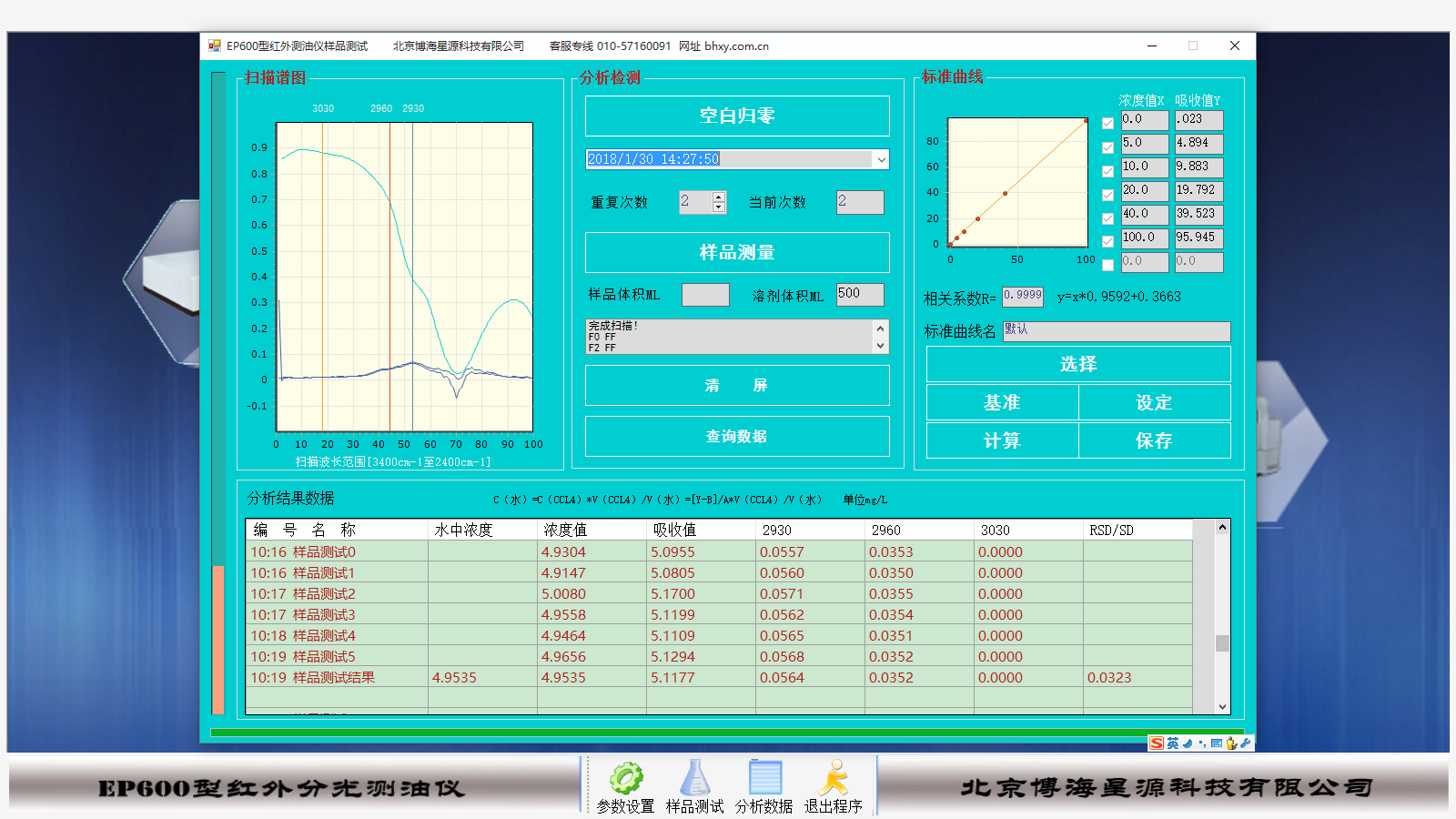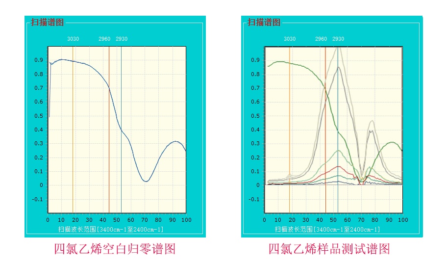 以下为我公司使用四氯乙烯的红外测油仪所检测的数据和谱图。