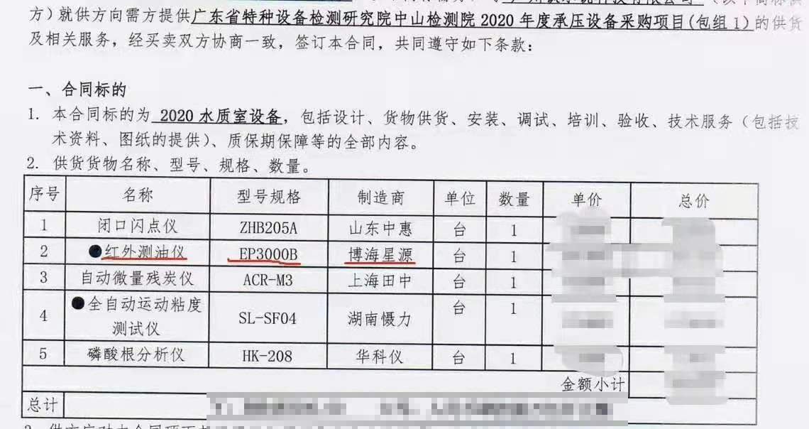 恭喜我司EP3000B全自动红外测油仪中标广东省特种设备检测研究院中山检测院2020年度承压设备采购项目!