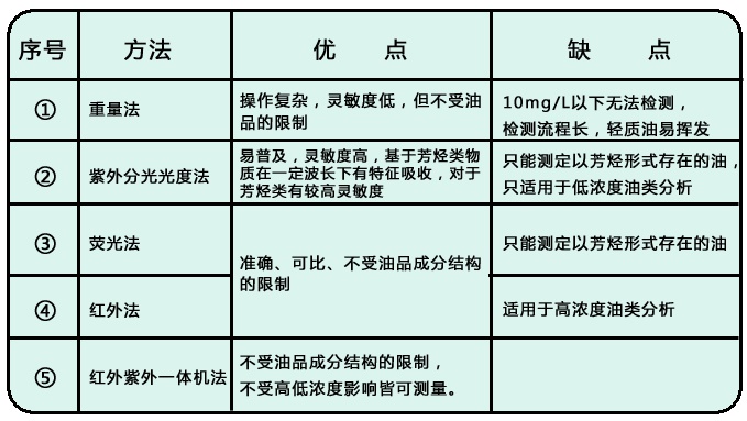 几种水中油分析的检测方法。