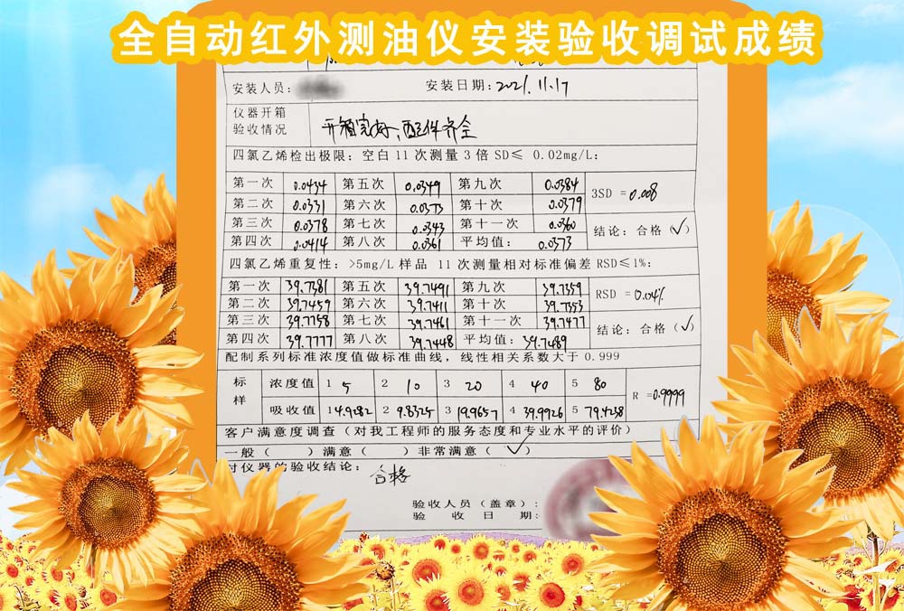 此次安装过程顺利,验收结果优异。实验员老师对EP900全自动红外测油仪的操作流程及检测性能表示满意。