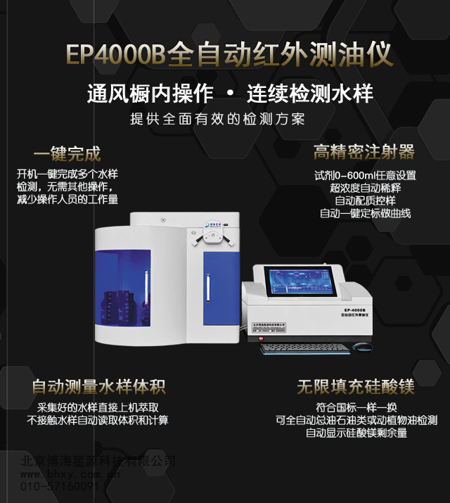 6) 通风厨内操作:EP3000B全自动红外测油仪体积小放置在常规标准1.2米通风橱中且配备活性炭吸附装置室内操作;