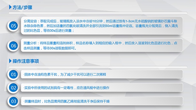 1.准备工作:用纯净的四氯化碳(或四氯乙烯)2次清洗玻璃器皿,包括100ml小烧杯、50ml带盖磨口玻璃瓶、50ml容量瓶、比色皿;