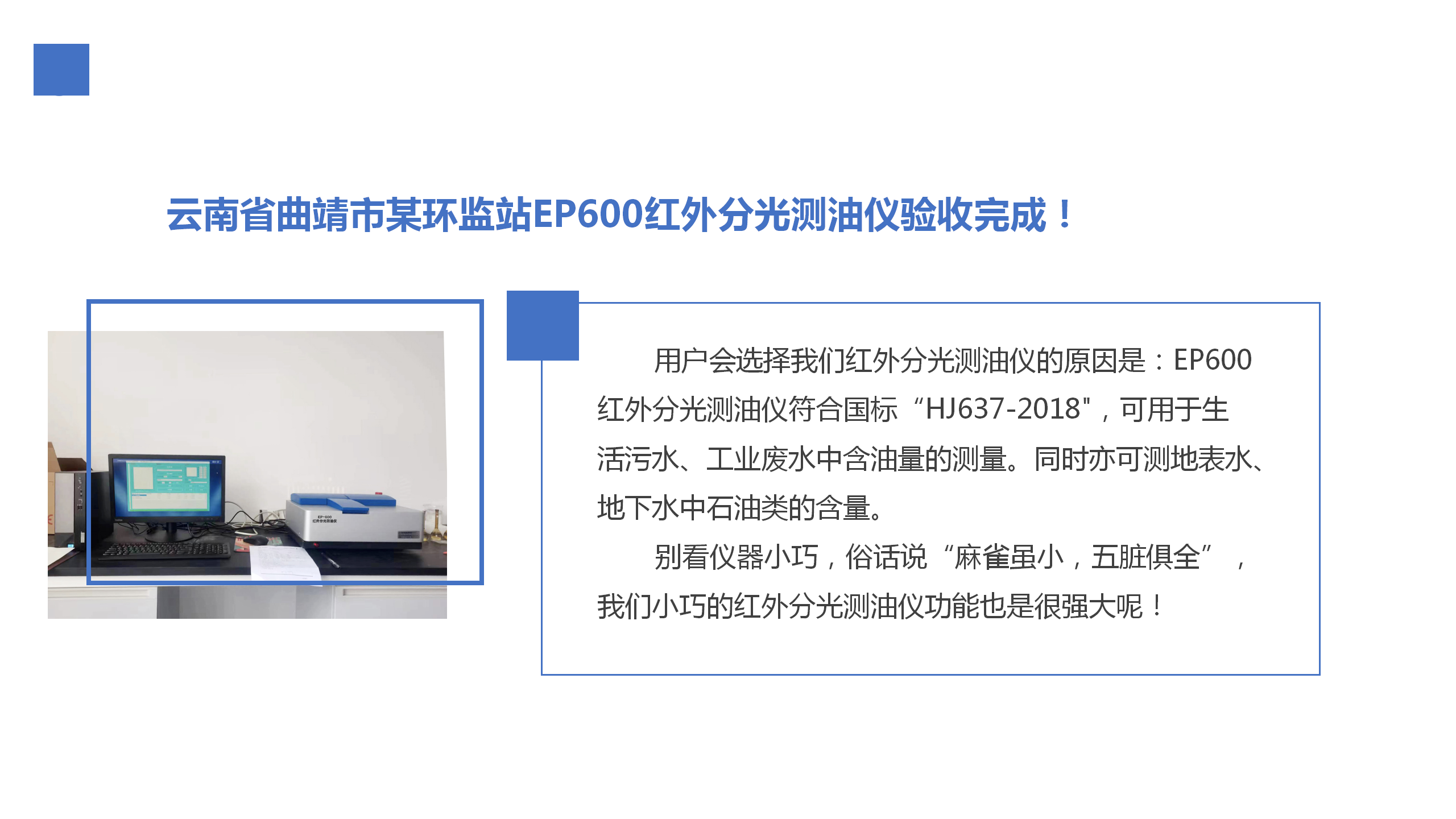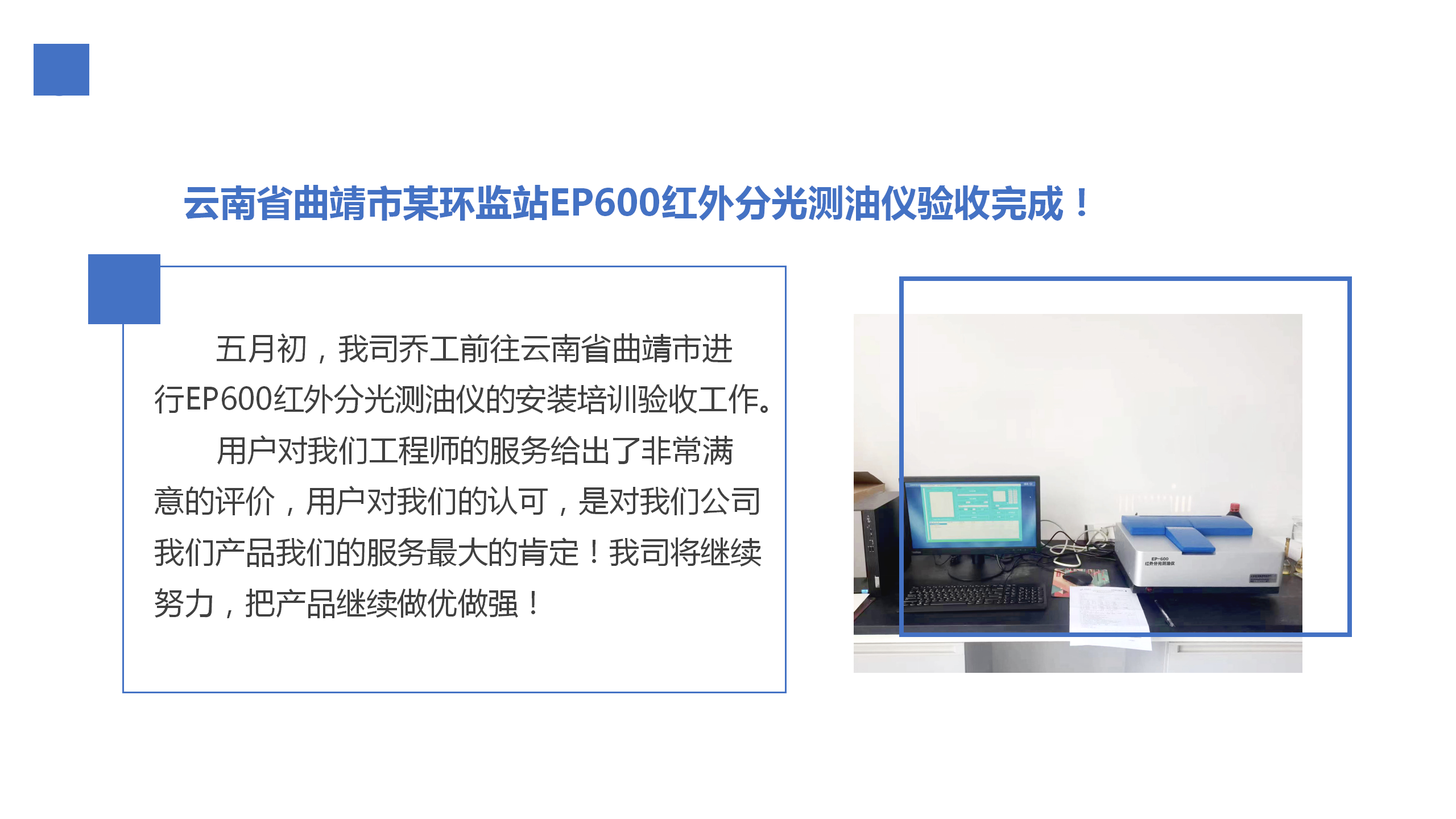 五月初,我司乔工前往云南省曲靖市进行EP600红外分光测油仪的安装培训验收工作。