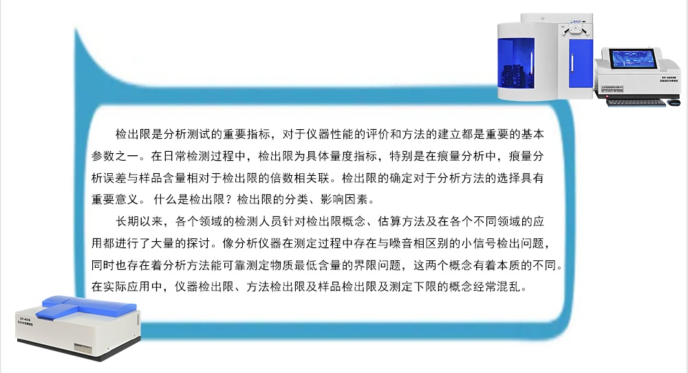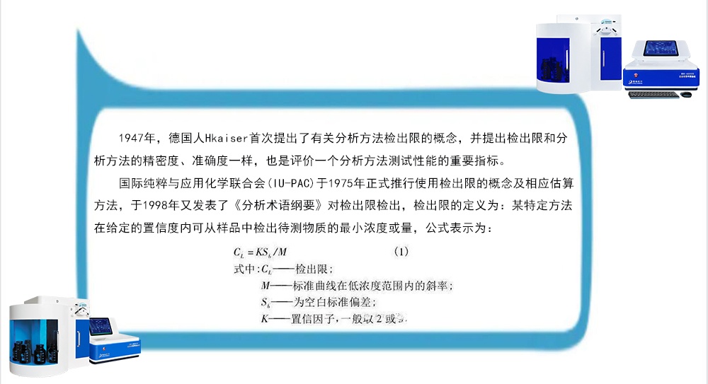 1947年,德国人Hkaiser首次提出了有关分析方法检出限的概念,并提出检出限和分析方法的精密度、准确度一样,也是评价一个分析方法测试性能的重要指标。