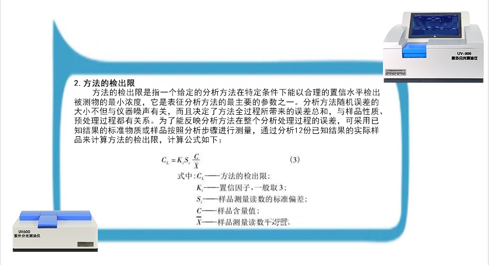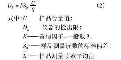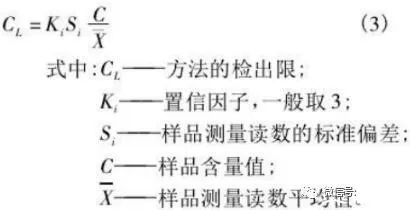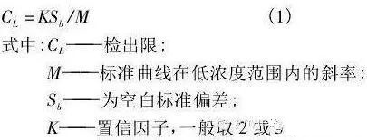 国际纯粹与应用化学联合会(IU-PAC)于1975年正式推行使用检出限的概念及相应估算方法,于1998年又发表了《分析术语纲要》对检出限检出,检出限的定义为:某特定方法在给定的置信度内可从样品中检出待测物质的最小浓度或量,公式表示为: