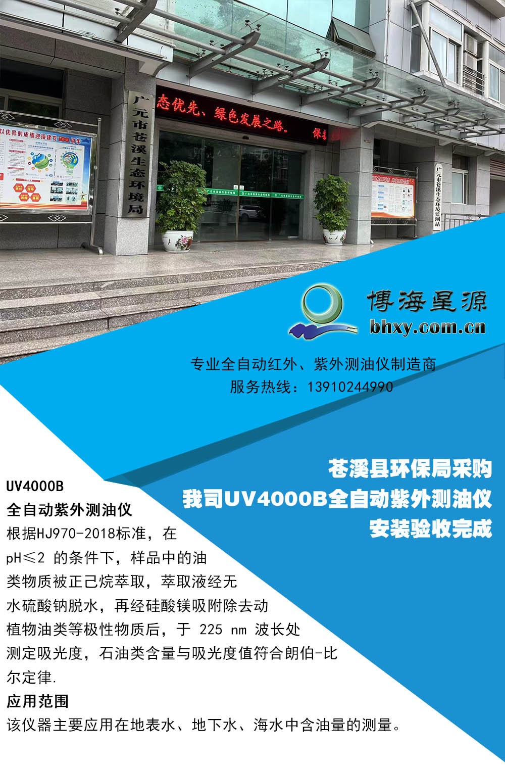 苍溪县环保局采购采购我司UV4000B全自动紫外测油仪验收完成