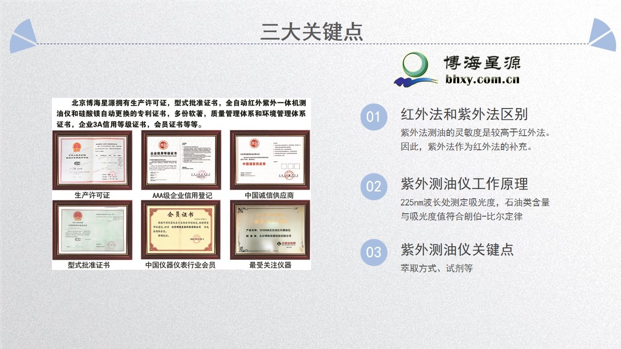 红外法和紫外法的不同,由于紫外法测的是单波长,它对污水的适用性较差,动植物油在紫外区响应极低而无法准确的监测,紫外法测油的灵敏度是较高于红外法。因此,紫外法作为红外法的补充,主要适用于第I-III类地表水,地下水以及第一、二类海水中石油类的测量。