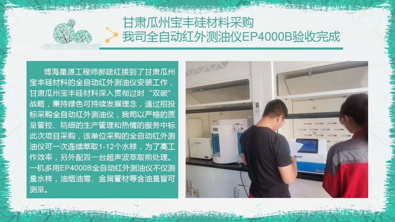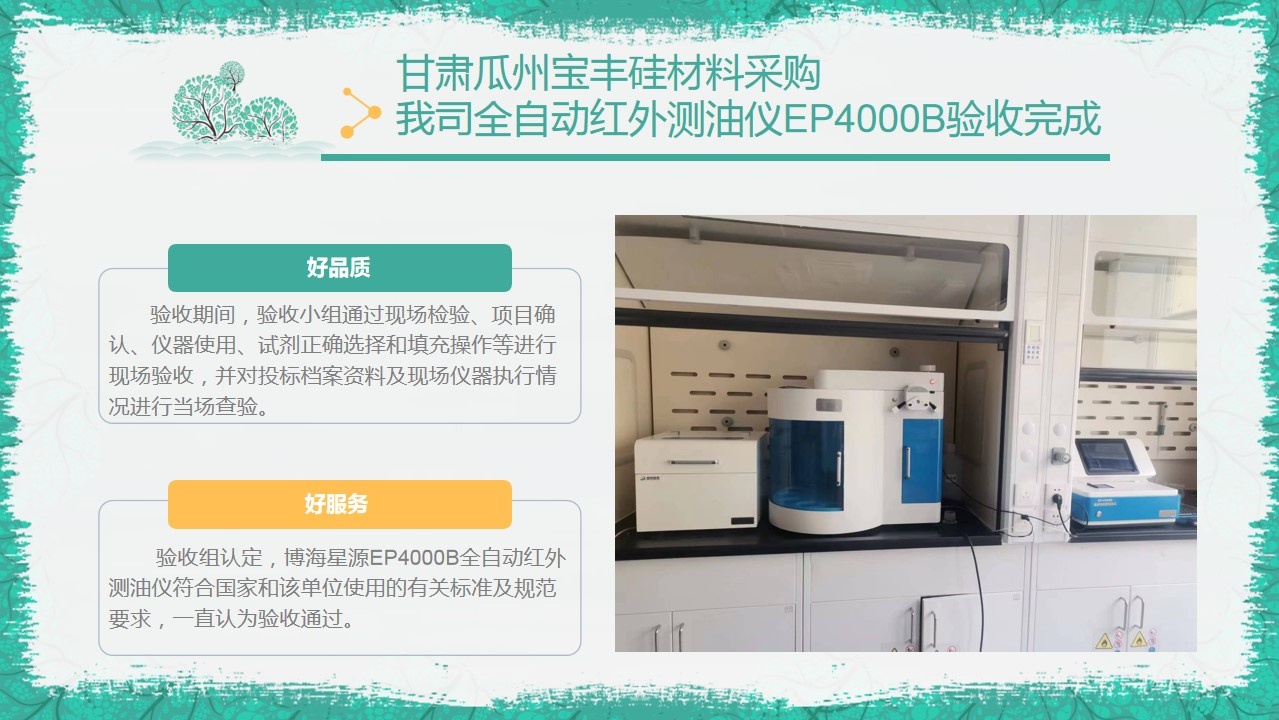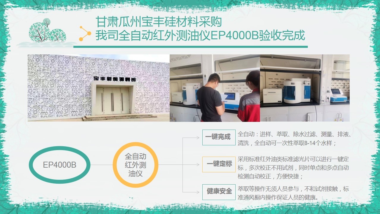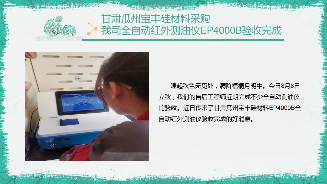 甘肃瓜州宝丰硅材料采购我司全自动红外测油仪EP4000B验收完成。