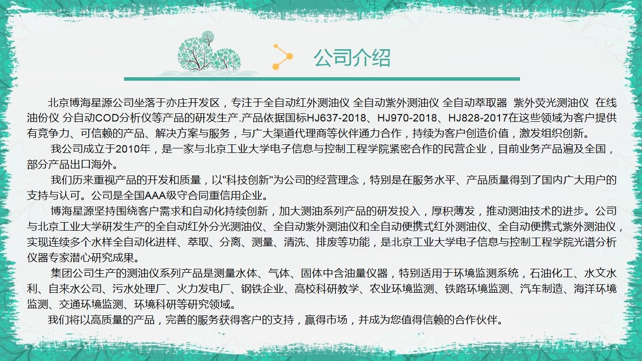 验收组认定,博海星源EP4000B全自动红外测油仪符合国家和该单位使用的有关标准及规范要求,一直认为验收通过。