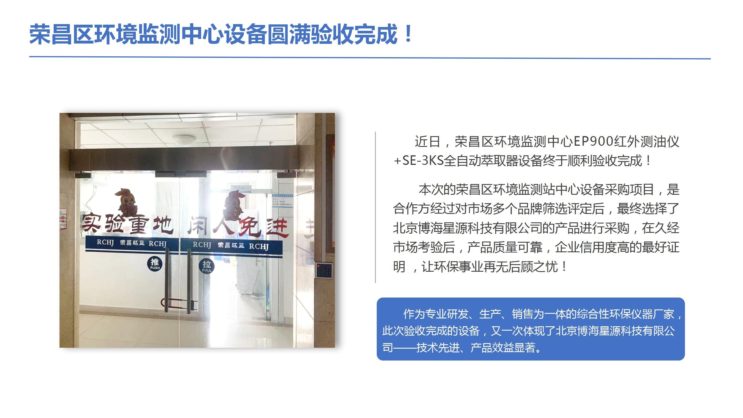 近日,荣昌区环境监测中心EP900红外测油仪+SE-3KS全自动萃取器设备终于顺利验收完成!