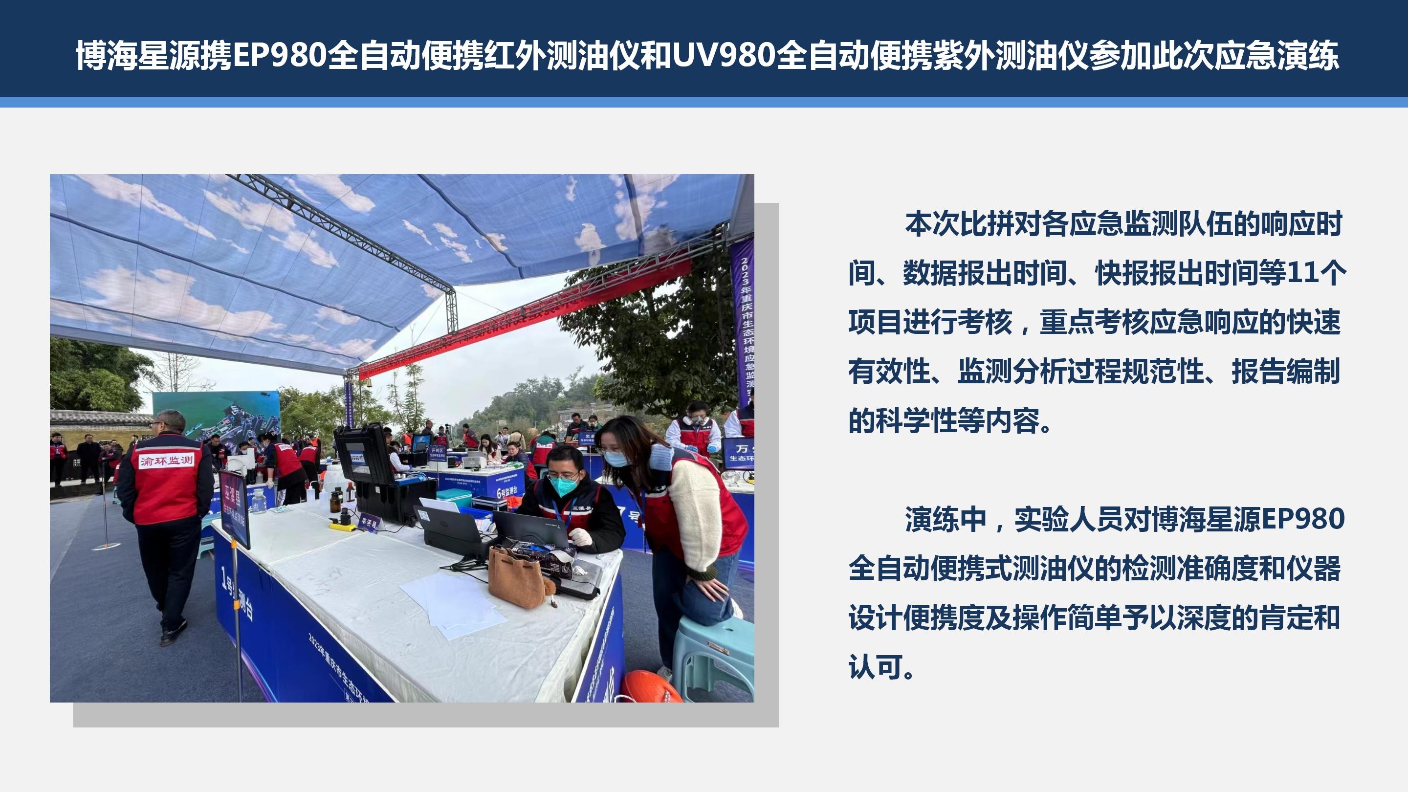 演练中,实验人员对博海星源EP980全自动便携式测油仪的检测准确度和仪器设计便携度及操作简单予以深度的肯定和认可。