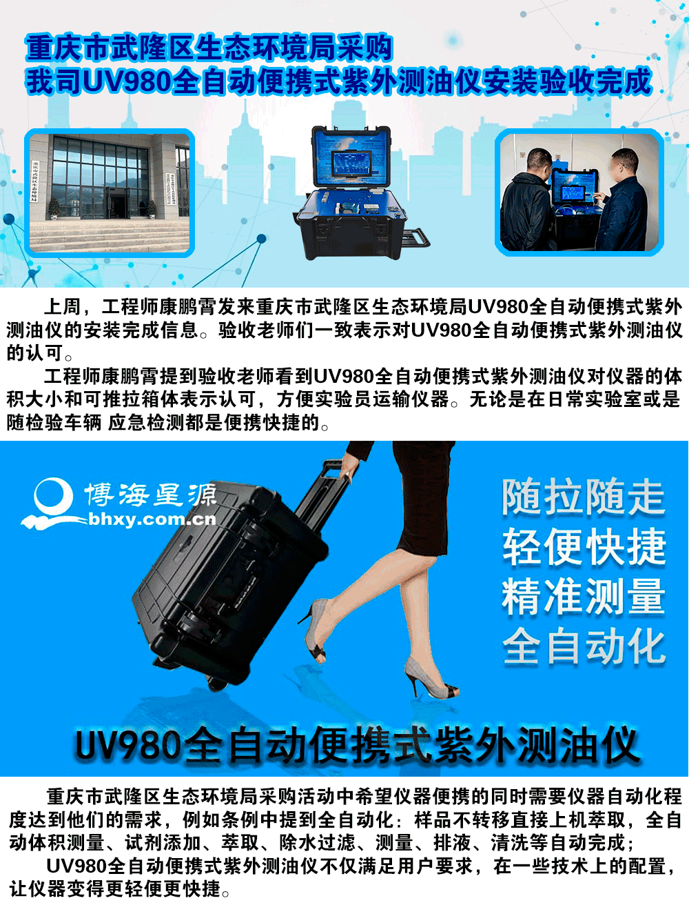 重庆市武隆区生态环境局采购我司UV980全自动便携式紫外测油仪安装验收完成