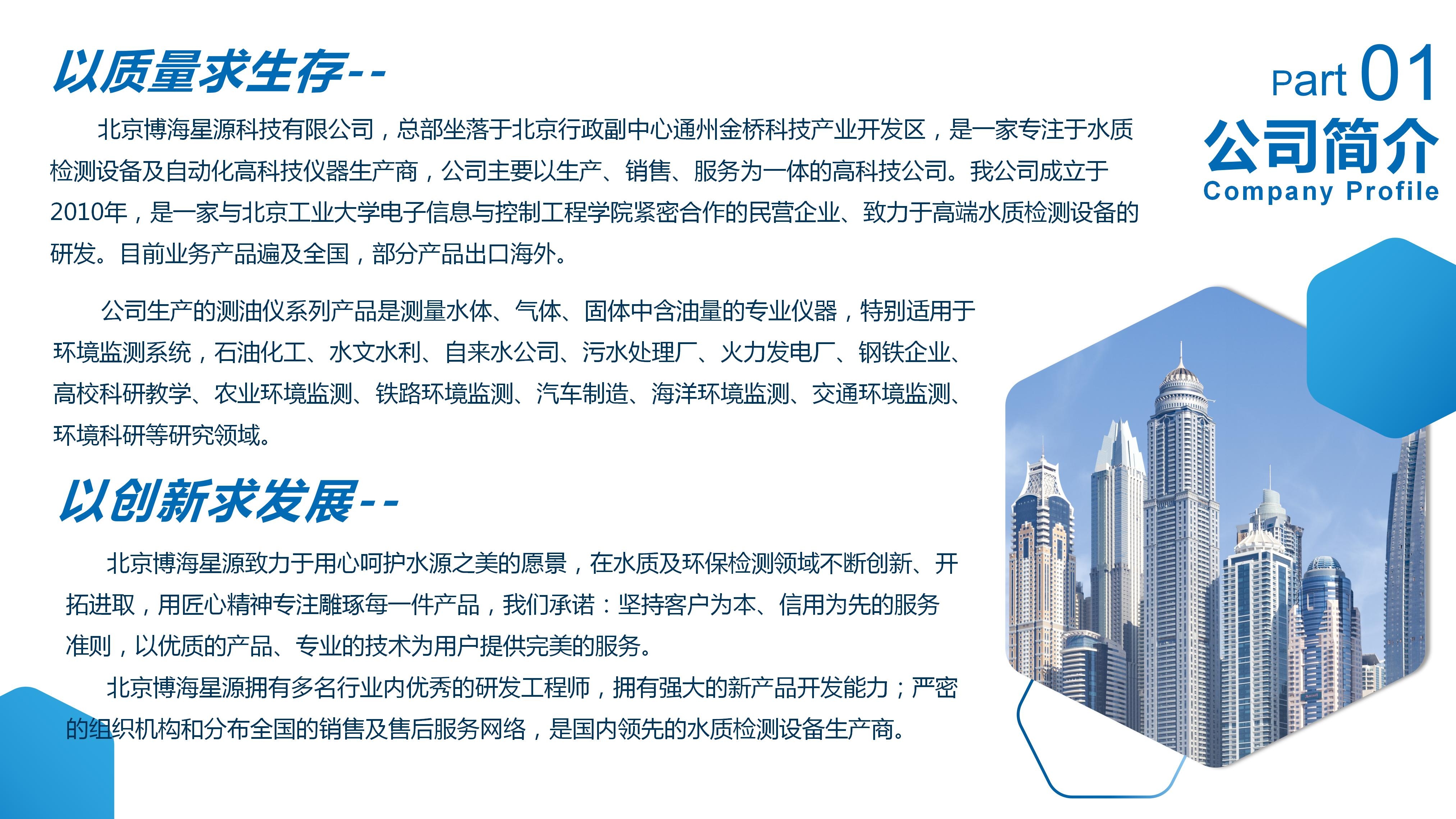 北京博海星源致力于用心呵护水源之美的愿景,在水质及环保检测领域不断创新、开拓进取,用匠心精神专注雕琢每一件产品,我们承诺:坚持客户为本、信用为先的服务准则,以优质的产品、专业的技术为用户提供完美的服务。