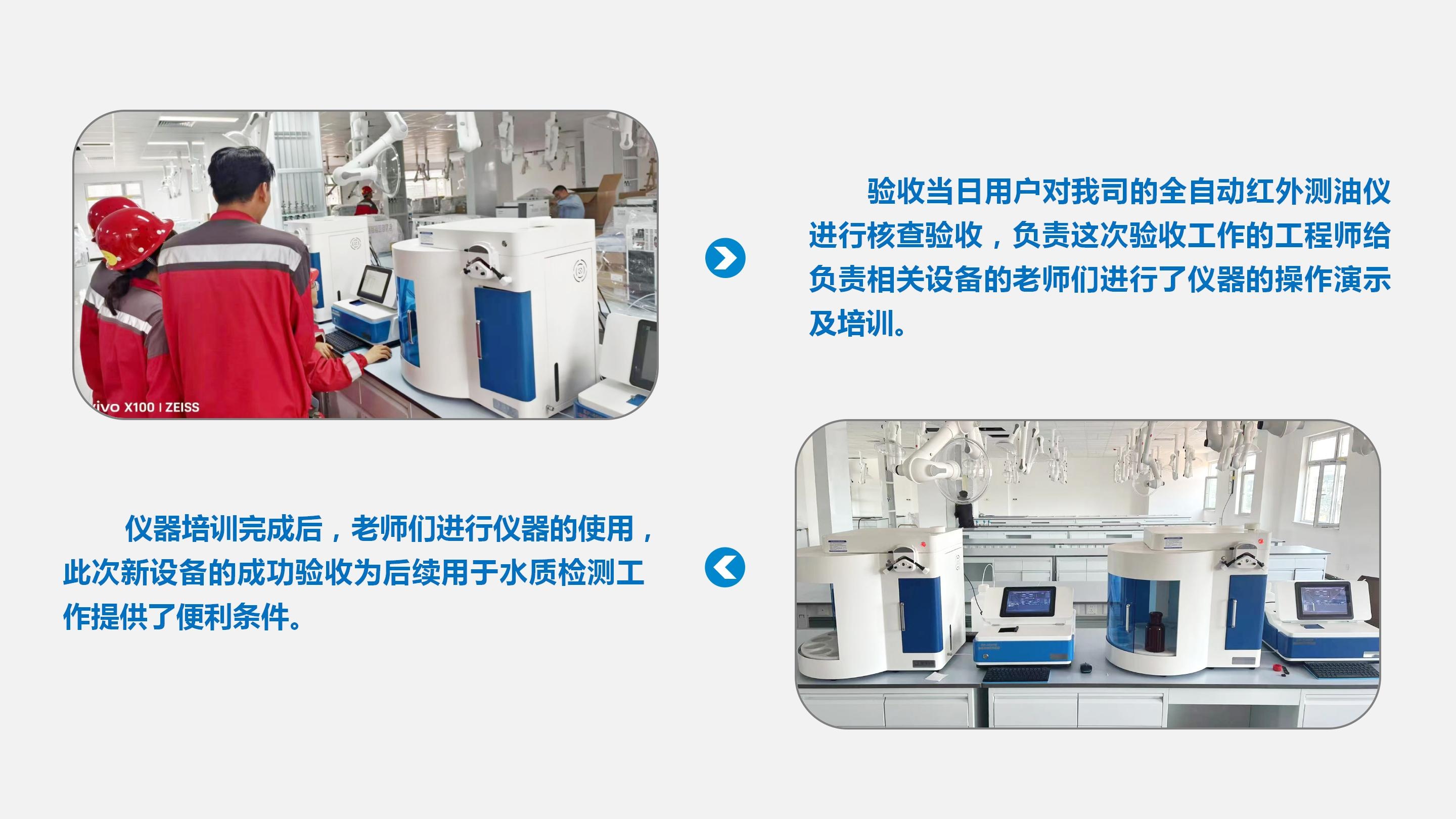 验收当日用户对我司的全自动红外测油仪进行核查验收,负责这次验收工作的工程师给负责相关设备的老师们进行了仪器的操作演示及培训。