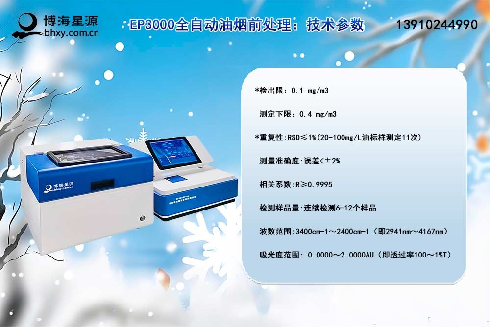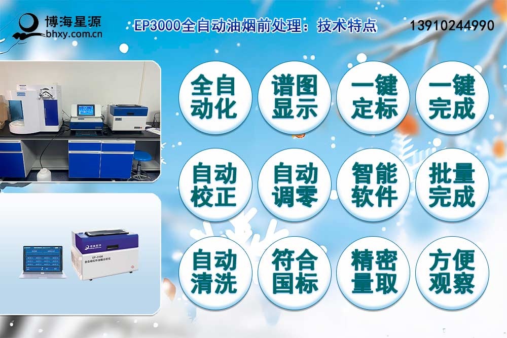 在环境监测领域,对油类污染物的精准检测至关重要。博海星源EP40000B全自动红外测油仪采用三波数红外分光光度法,能够快速、准确地测定各类样品中的油含量。其自动化程度高,操作简便,大大提高了检测效率,减少了人为误差。搭配EP3000全自动油烟前处理设备,更是为油烟监测提供了一站式解决方案。EP3000能够高效地对油烟样品进行采集、处理,确保后续检测数据的可靠性。