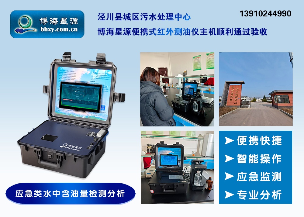 近日,泾川县城区污水处理中心完成新购博海星源便携式红外测油仪验收,该仪器将用于污水监测,助力提升水质监测水平。