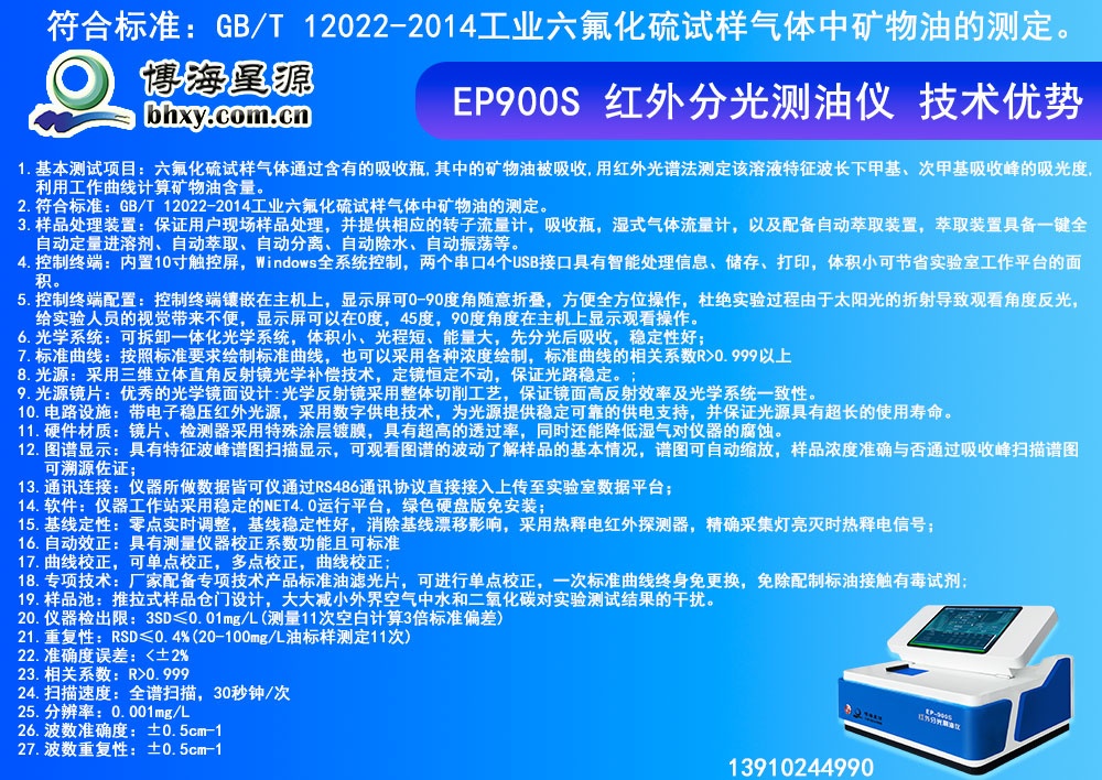 - EP900红外测油仪在六氟化硫试样气体应用中的优势