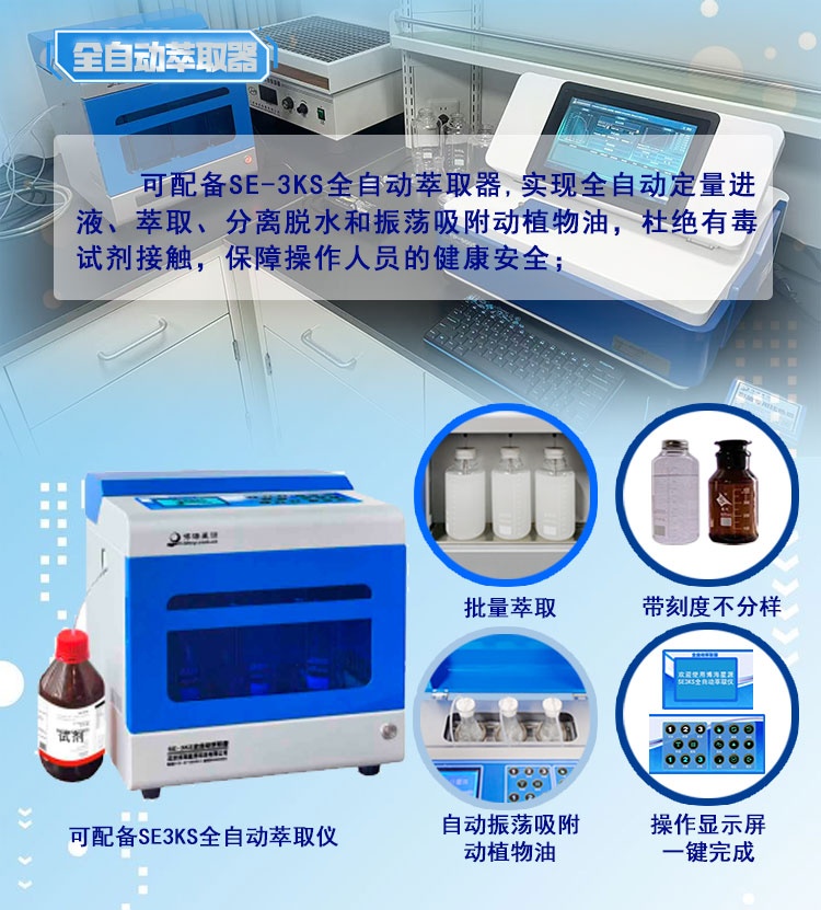 全自动流程:从萃取、脱水、吸附到检测一键完成,大幅降低人工操作与试剂接触风险