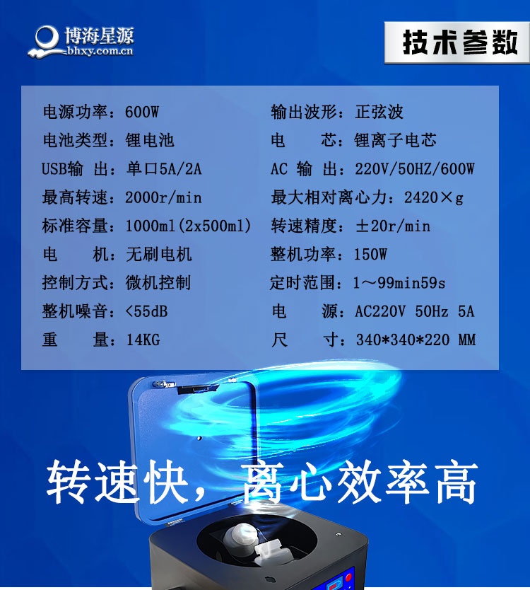 5、倒计时结束,设备自动停机、蜂鸣提示,离心作业完成。
