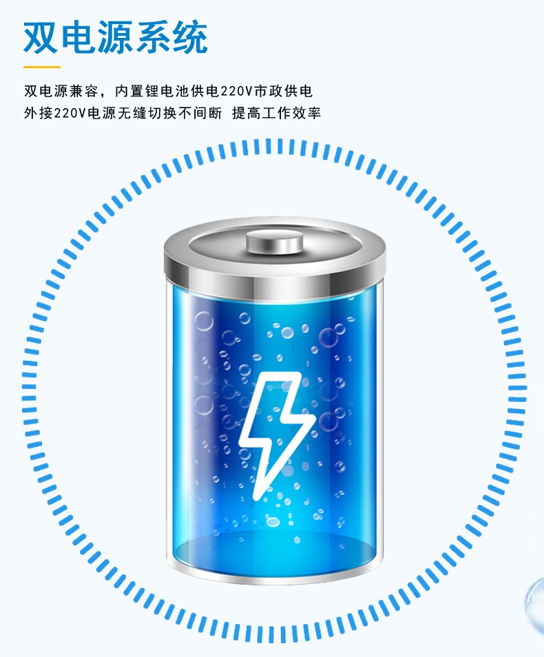 14. 充电储能:采用锂电池,一次充电使用≥8 h,可连接汽车电源或220V常规电源,测量时间不受限制;