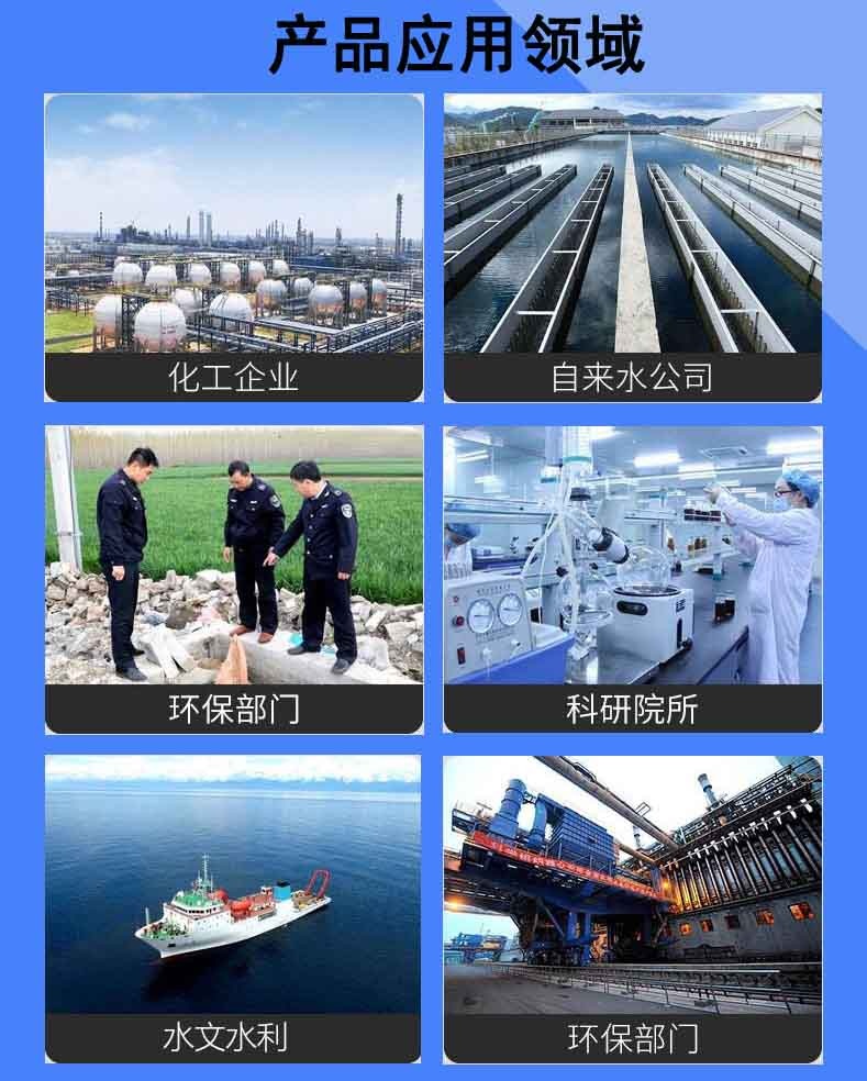 环境监测系统,石油化工、水文水利、自来水公司、污水处理厂、火力发电厂、钢铁企业、高校科研教学、农业环境监测、铁路环境监测、汽车制造、海洋环境监测、交通环境监测、环境科研等检测室、实验室使用。
