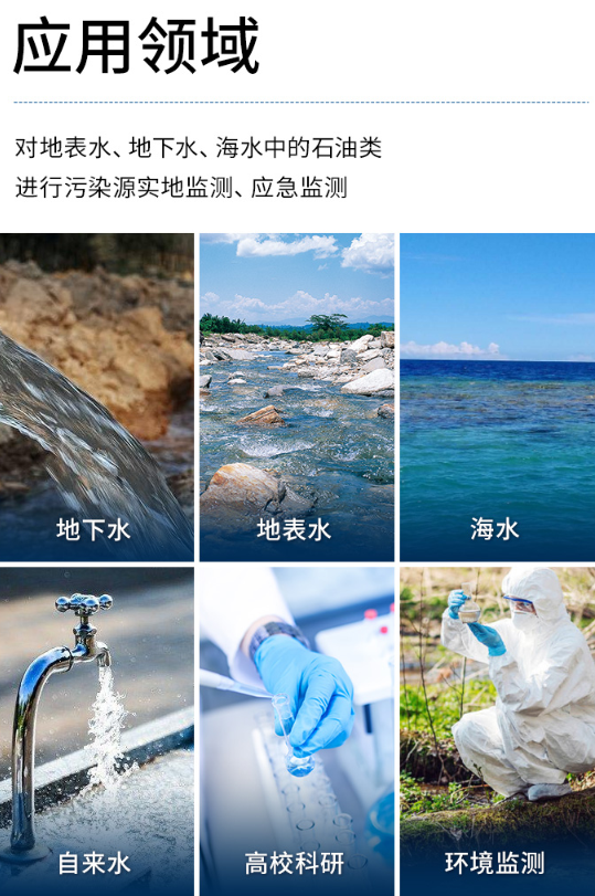 紫外分光测油仪可广泛应用于环境监测系统,石油化工、水文水利、自来水公司、污水处理厂、火力发电厂、钢铁企业、高校科研教学、农业环境监测、铁路环境监测、汽车制造、海洋环境监测、交通环境监测、环境科研等检测室、实验室使用。
