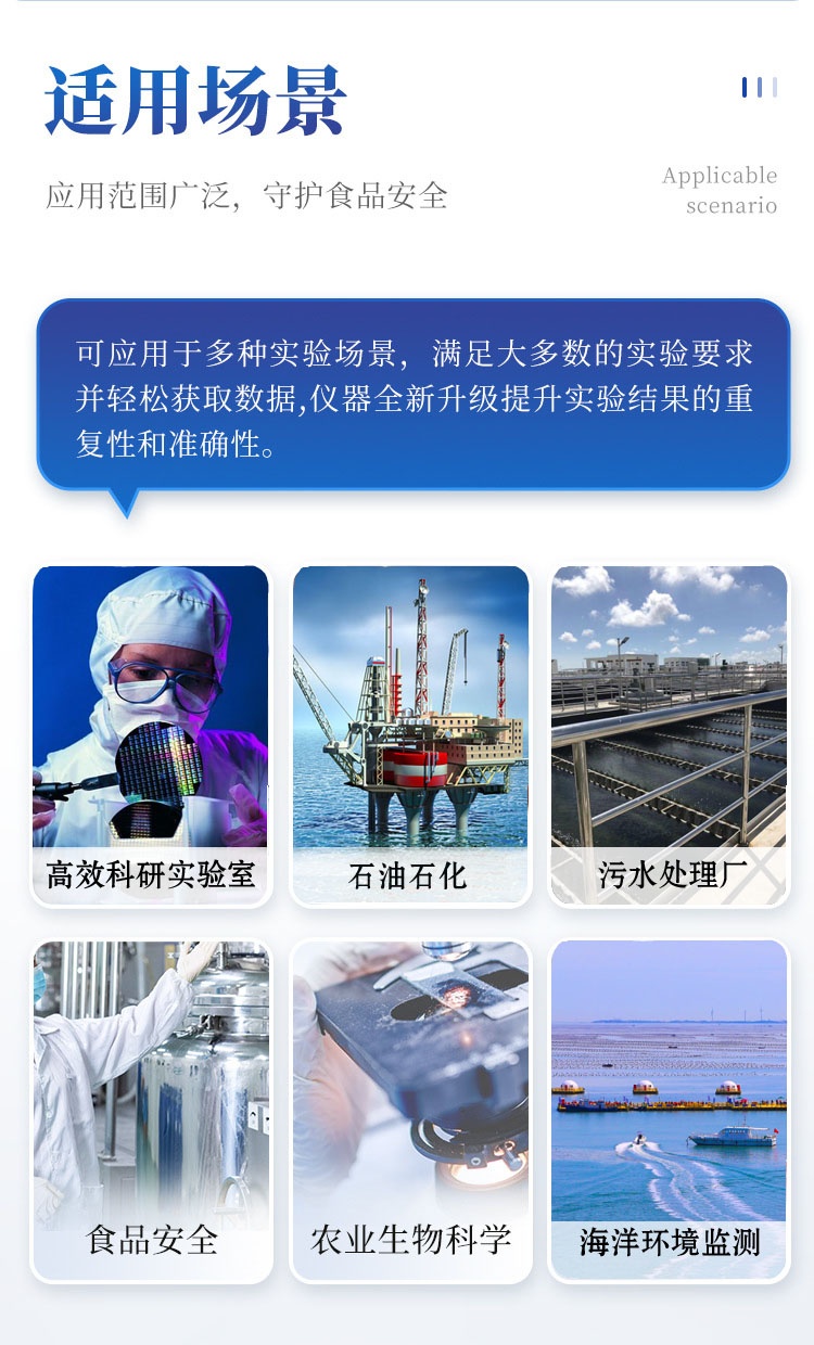 环境监测系统,石油化工、水文水利、自来水公司、污水处理厂、火力发电厂、钢铁企业、高校科研教学、农业环境监测、铁路环境监测、汽车制造、海洋环境监测、交通环境监测、环境科研等检测室、实验室使用。