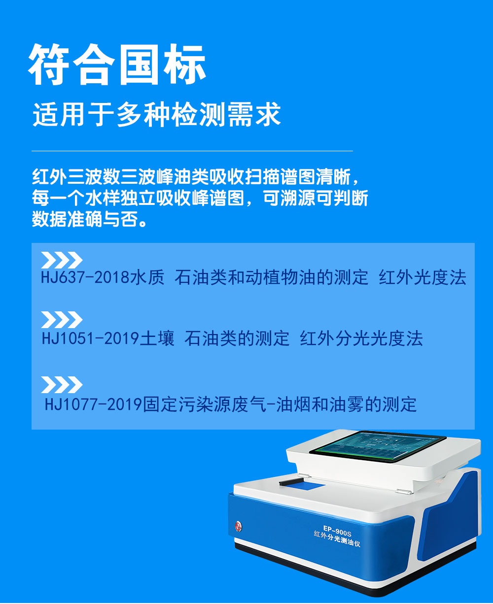 1)符合国标HJ637-2018,红外三波数三波峰油类吸收扫描谱图清晰,每一个水样独立吸收峰谱图,可溯源可判断数据准确与否;