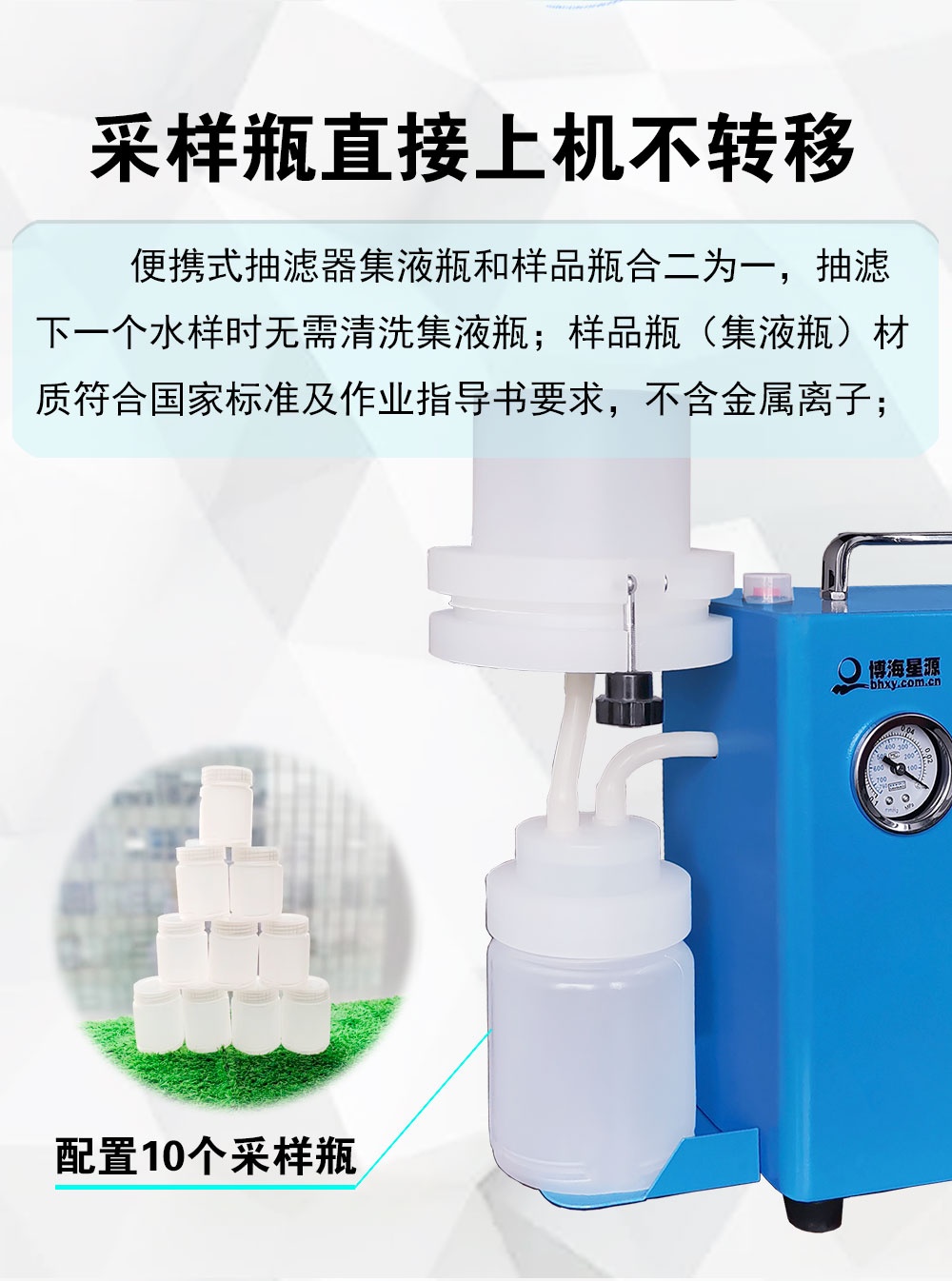 集液瓶和样品瓶合二为一,抽滤下一个水样时无需清洗集液瓶;