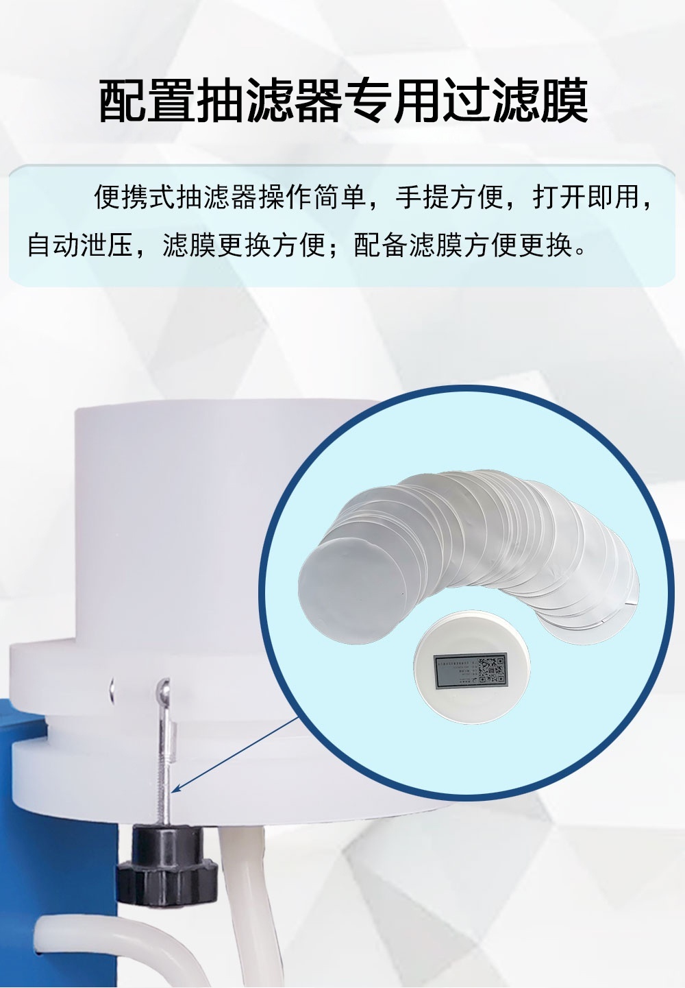 操作简单,手提方便,打开即用,自动泄压,滤膜更换方便;