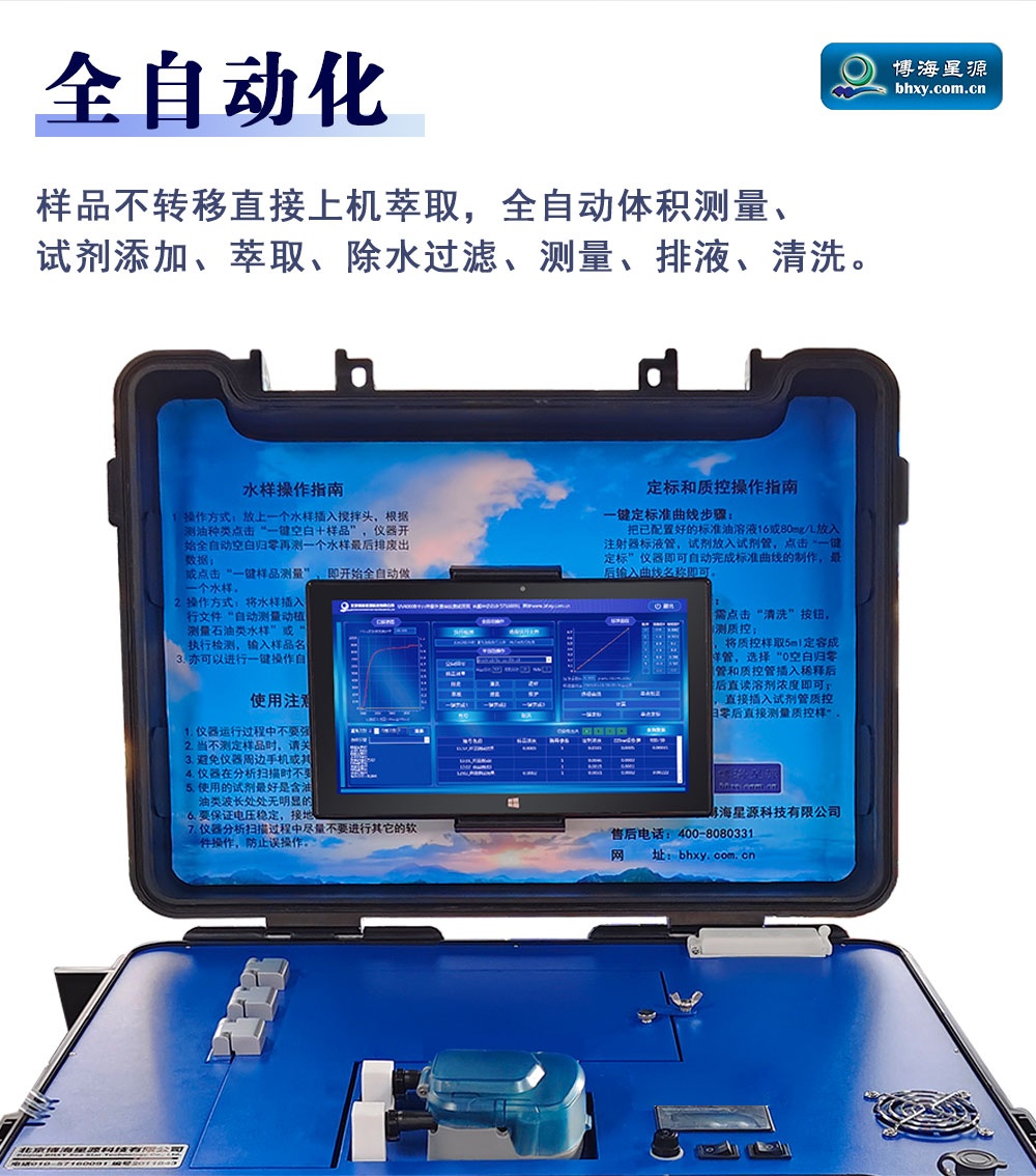 适用于地表水、地下水、海水中的石油类的全自动检测分析。
