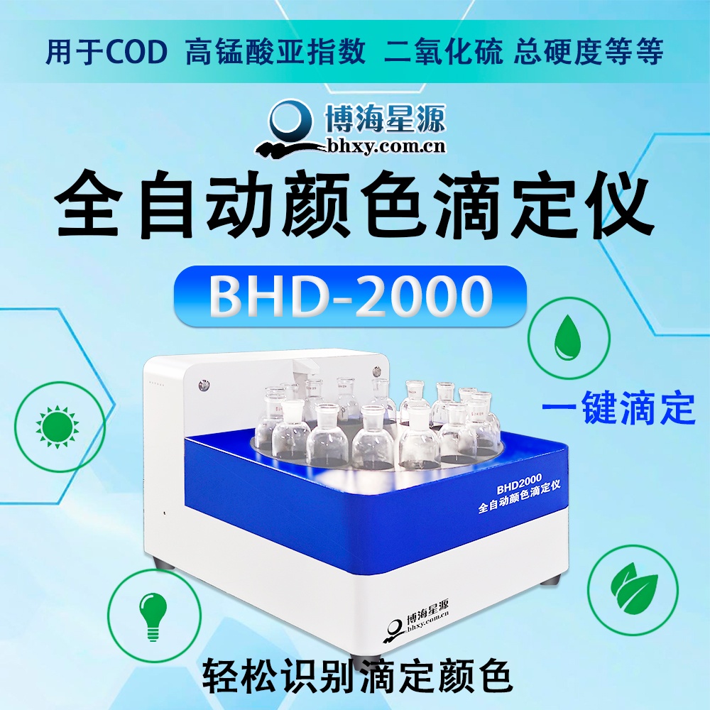 博海星源BHD2000全自动颜色滴定仪用于COD、高锰酸亚指数、二氧化硫、总硬度等等通过颜色判断滴定终端实验,能够替代肉眼观察手工滴定的操作。