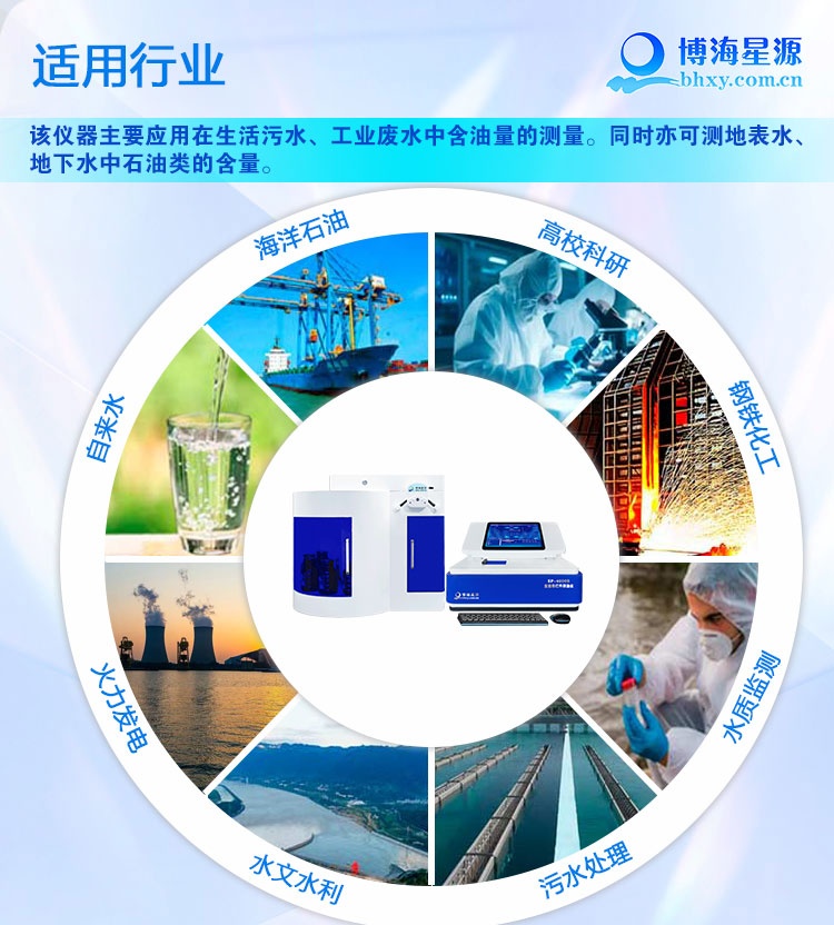 该仪器主要应用在生活污水、工业废水中含油量的测量。同时亦可测地表水、地下水中石油类的含量。