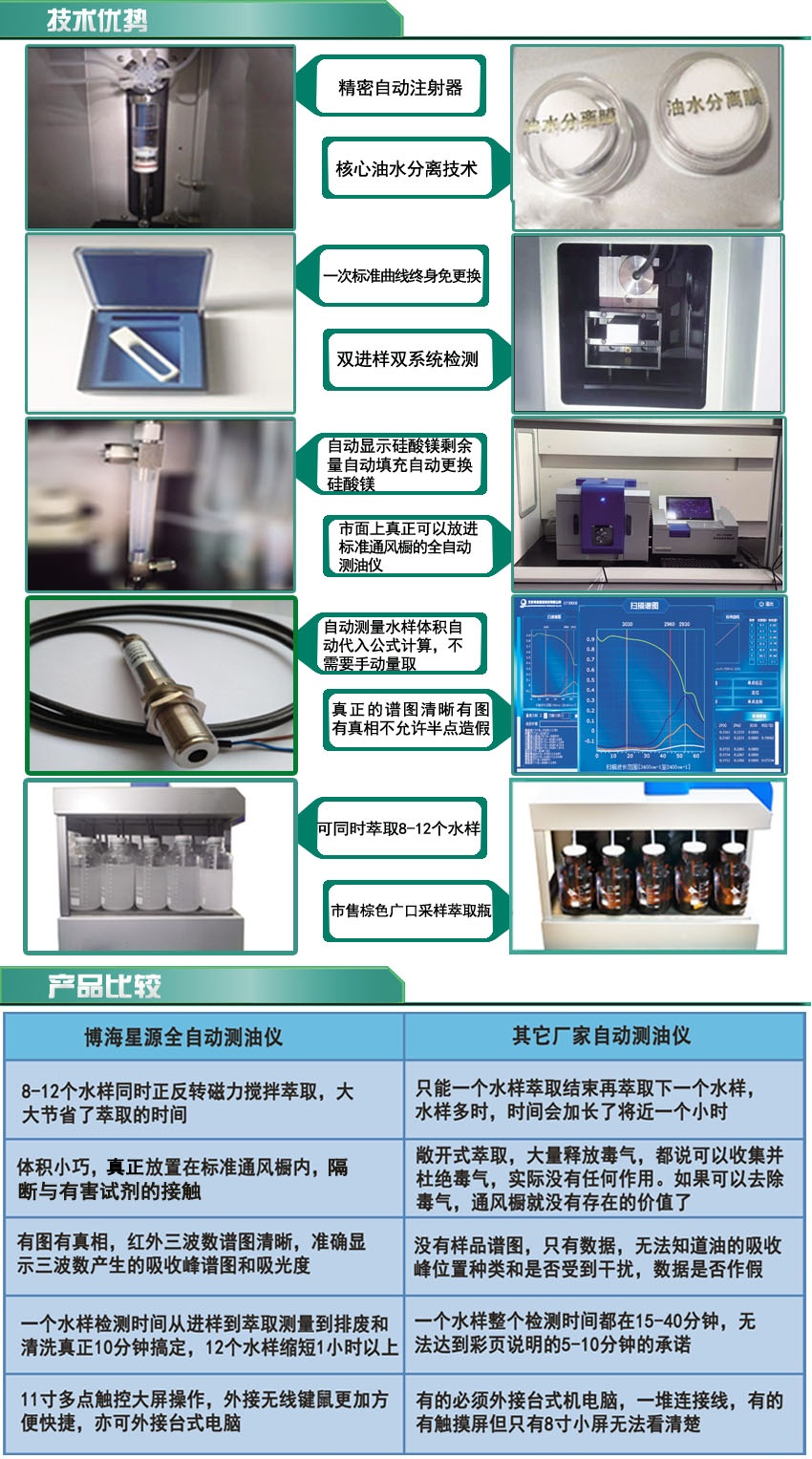1) 全自动化:全自动进样、萃取、除水过滤、测量、排液、清洗,可连续做8-12个水样;
