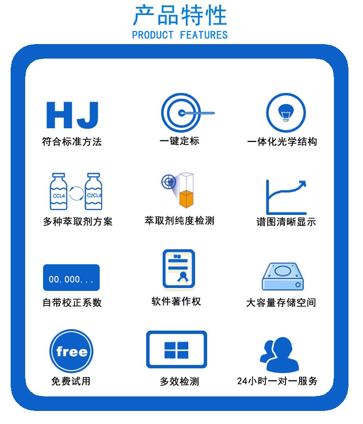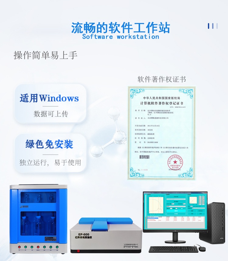 5)可以检测水样中的总油,石油类,动植物油,还可以检测饮食业油烟气体中含油,固体中含油;