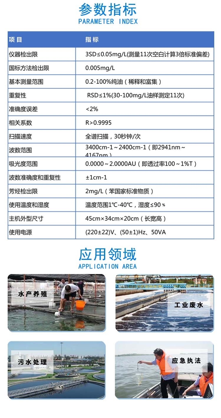该仪器主要应用在生活污水、工业废水中含油量的测量,也可用于餐饮业烟气中油的监测和固体中含油量的监测。该仪器是测量水体、气体、固体中含油量的仪器。