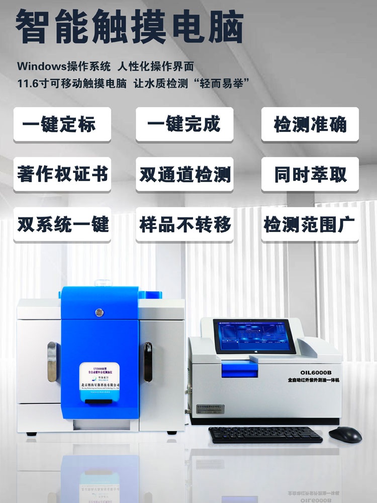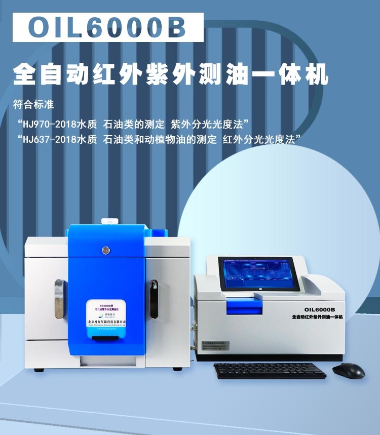 OIL6000红外紫外一体机测油仪适用于工业废水、生活污水和地表水、地下水的动植物油和石油类的检测分析。应用于环境检测,石油化工,水文水利,自来水公司,污水处理,高校科研教育等。