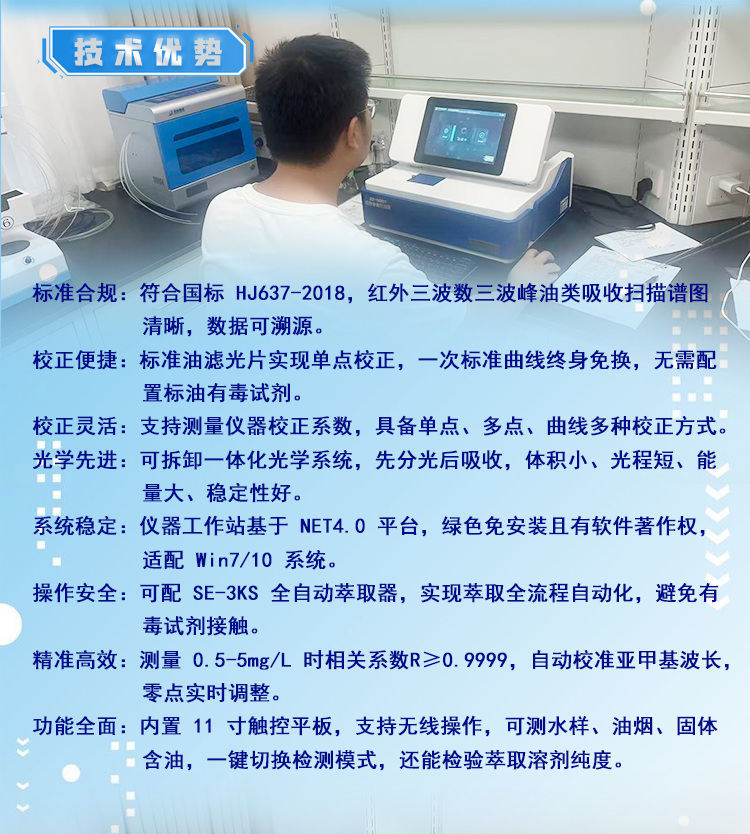 高精准检测:检出限低、重复性好、线性度优异,满足微量油类精准分析